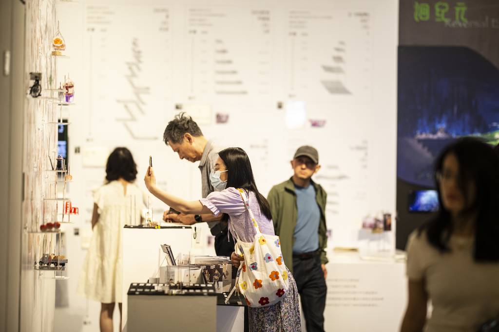 展出作品鲜明彰显“艺科融合、跨界创新”特质。青年创作者大胆探索人工智能(AI)、数字媒介与传统技艺、手工温度的交融碰撞,在材料与观念层面展开双重实验,依托智能交互、数字文化遗产、生物设计等技术手段,以跨学科视野、跨时空思维赋能创作。部分展区特设“创作过程”展示单元,公开从技术实验、用户调研至艺术转化的手稿及数据模型,践行“艺科融合”方法论。